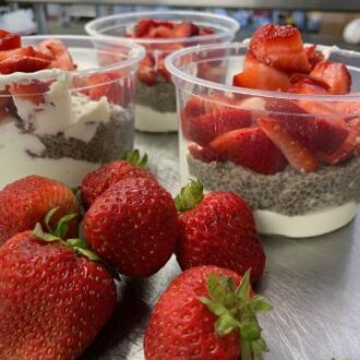 Ingredients: gluten free rolled oats, almond milk, chia seeds, berries