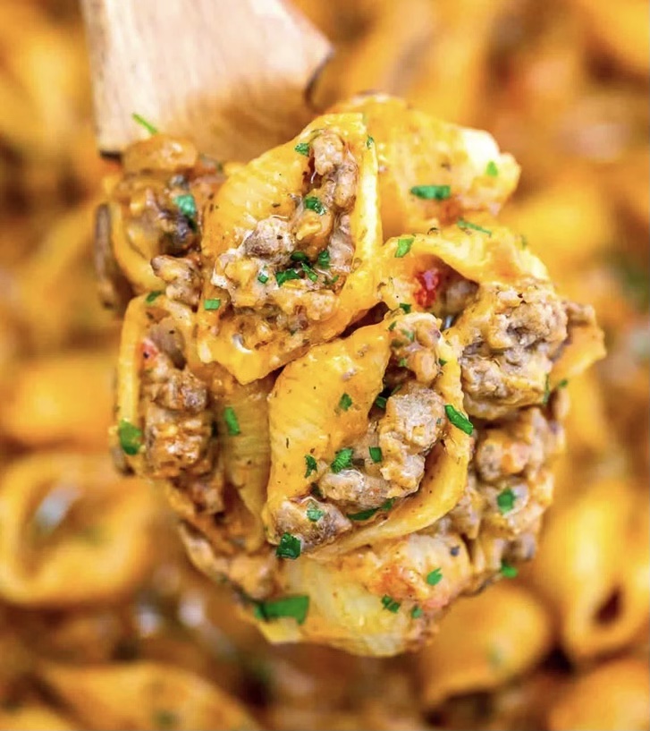 Creamy Beef and Shells is a delicious and hearty pasta dish. Made with beef, pasta, cheese and all cooked in a flavorful creamy marinara sauce.