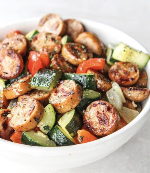 Perfectly seasoned mix of sausage, zucchini, bell pepper and onion.